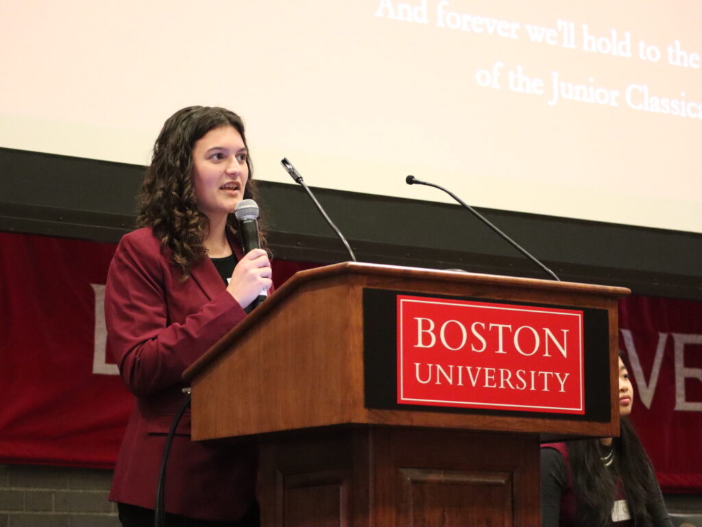 Then-1st-VP Julianna Lee delivers the Opening Remarks to Classics Day 2023! | Image Credit: MassJCL Historian (Flickr)